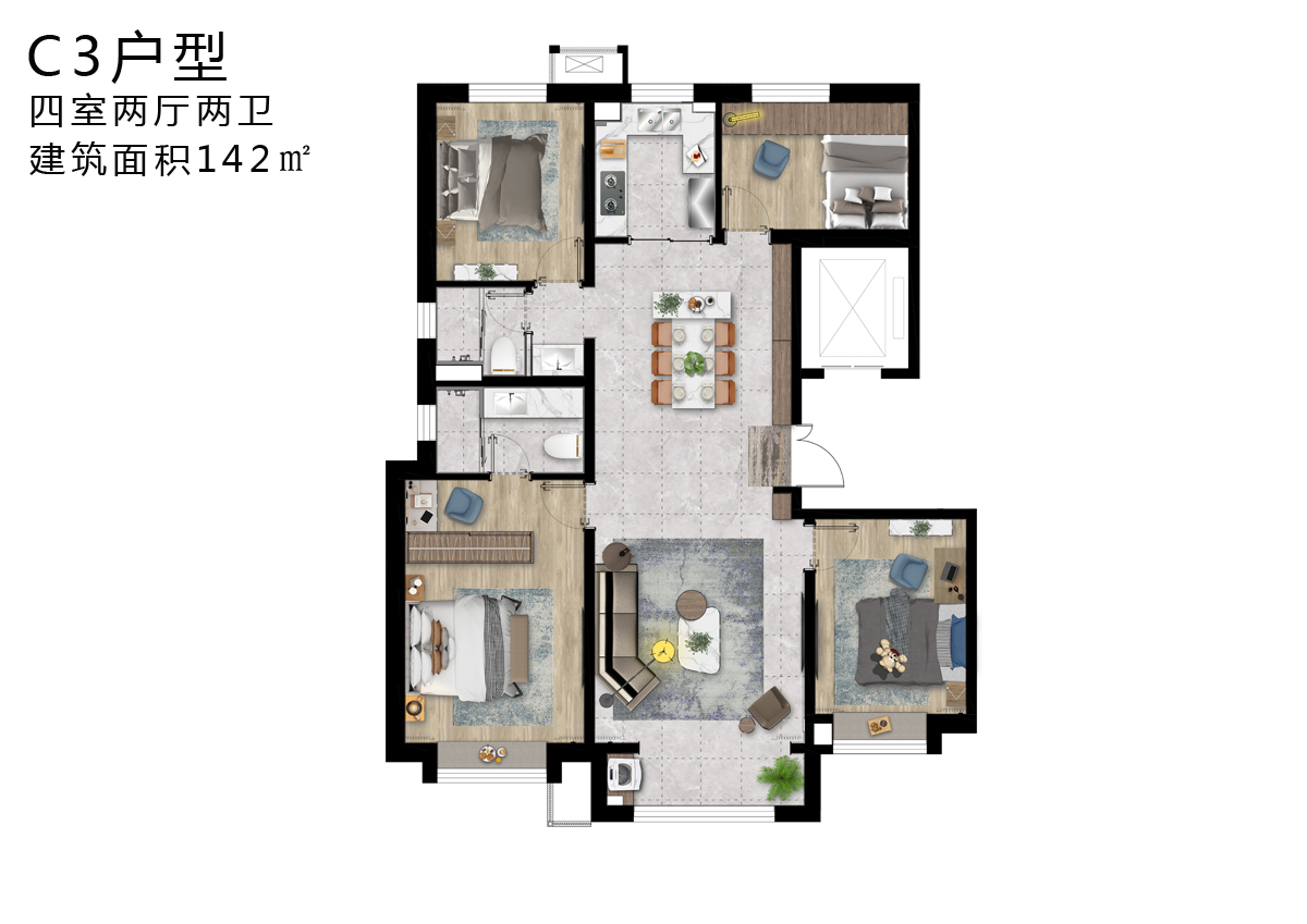 4室2厅2卫 (建面142.0m²)