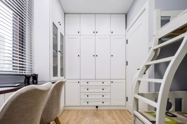 儿童房利用门手的空间打造了一个衣帽间,双层床的设计也超省空间,这样的设计值得小户型借鉴!