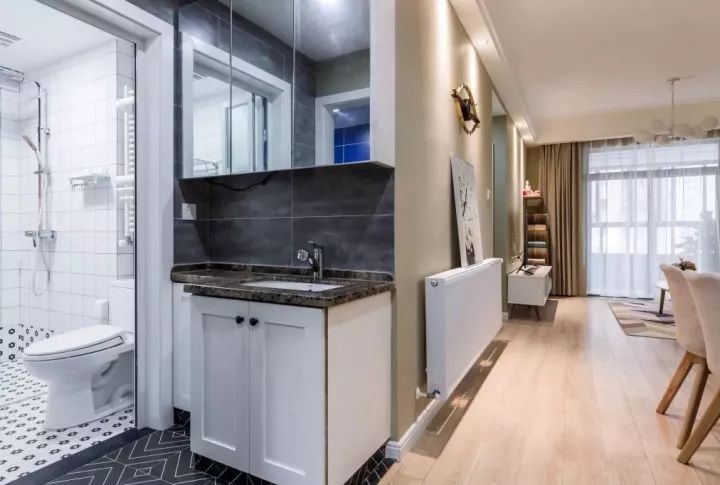 从客厅到餐厅、再到卧室,利用墙面的空间打造柜子,有着极强的储物收纳功能。小户型必需一次性做足收纳空间,才能保证入住后的舒适度。