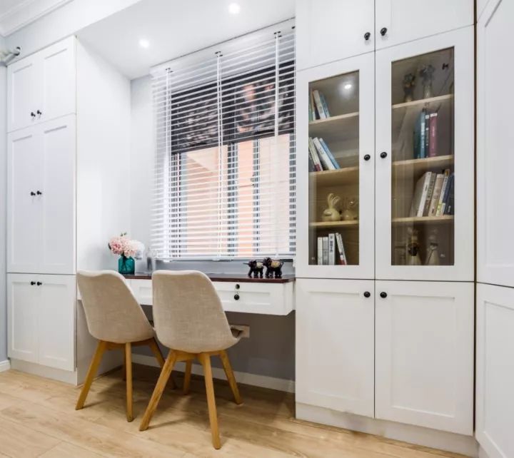 靠窗设计了书桌及收纳柜,书桌靠窗保证了充足光线,保护视力~