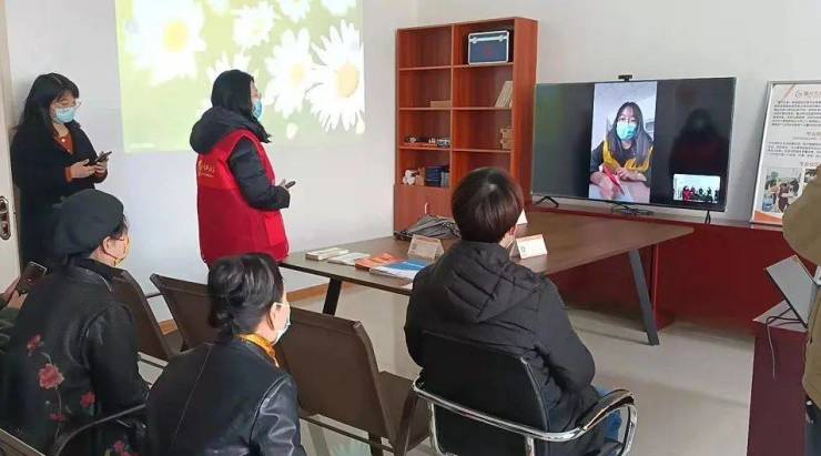 社区志愿者线上培训老年人“一键”点击手机享受便捷养老服务。