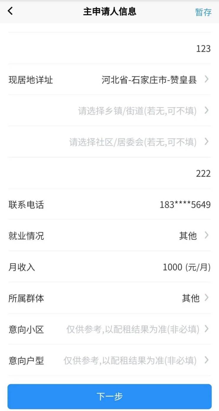 7.依次更新“主申请人信息”“家庭成员信息”“家庭住房信息”“家庭财产信息”。