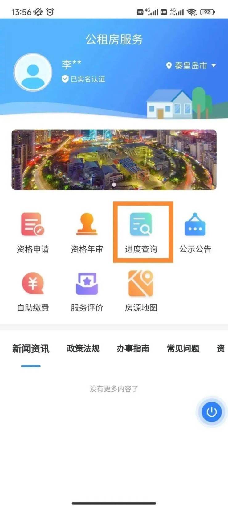9.公租房服务首页点击“进度查询”,可以查看办理进度和提交申请信息的详情。