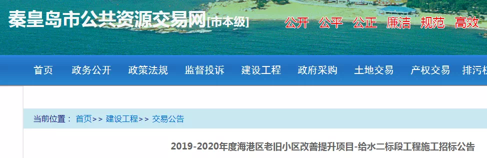 项目概况:2019-2020年度海港区老旧小区改善提升项目-给水二标段工程施工。主要包括:燕安里(消防支队家属院)3~3.4栋,河东商检楼,红光南里(4~8、1~3栋)、燕海东里26、27栋,燕海东里23、24栋,燕海东里31栋,燕安里(公安局家属院)1、2、5、6栋,玉峰里市政家属院,建新里20~22栋,先富里7~24栋,先富里3、5、6栋,东华北里1~3、7~14、-1栋,东环北里11~32栋的自来水改造及燕安里(消防支队家属院)3-3.4栋室内自来水改造。