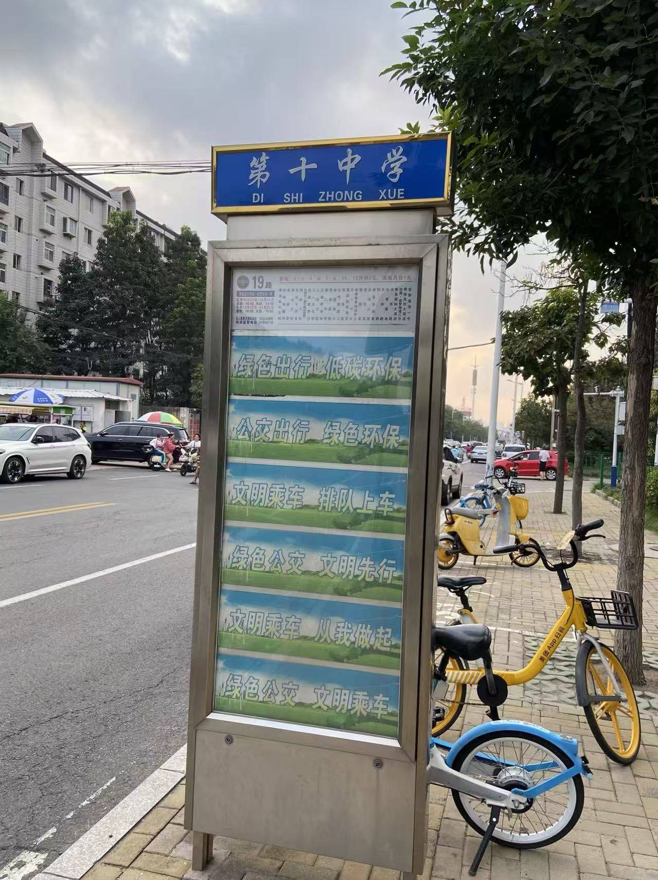 乘坐2路、19路公交车,在第十中学站下车,路北。