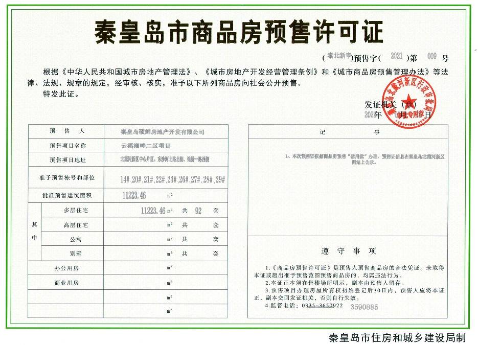 (秦北新审)预售字(2021)第009号 查看图片 | 2021-05-28 |