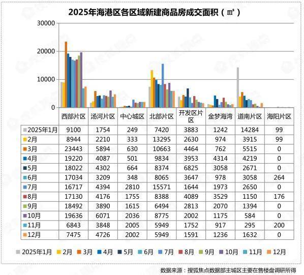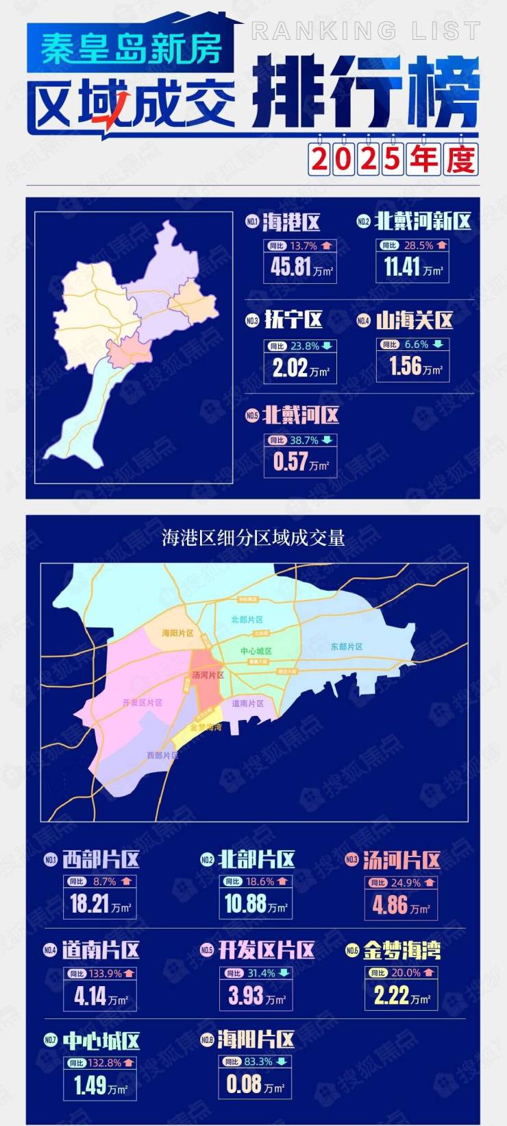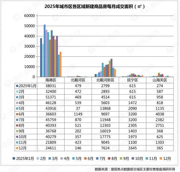 据搜狐焦点调研院最新数据显示:海港区范围内8大片区,2025年新房成交面积除开发区和海阳片区外,其他区域同比全线上涨。