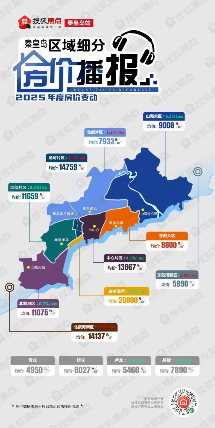 2025年秦皇岛新房年度区域房价出炉,对比2024年的量价齐跌,2025年的房价趋稳,成交上涨。