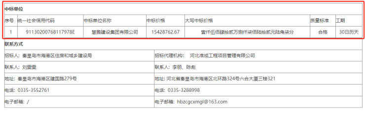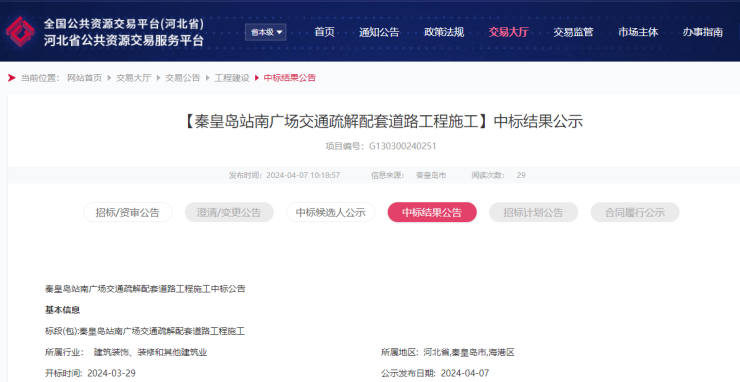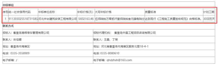 秦皇岛站南广场停车场项目中标单位:河北中古建筑安装工程有限公司,详情如下: