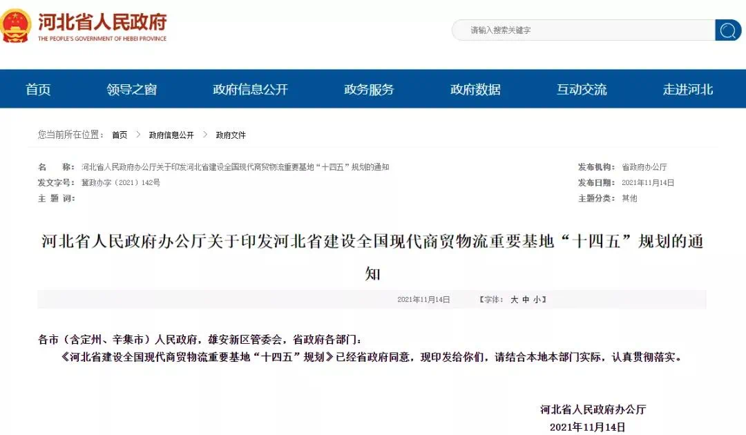 在2021年11月14日省人民政府办公厅关于印发河北省建设全国现代贸易物流重要基地“十四五”规划的通知,明确了将秦皇岛将秦皇岛港打造成现代综合贸易港的规划: