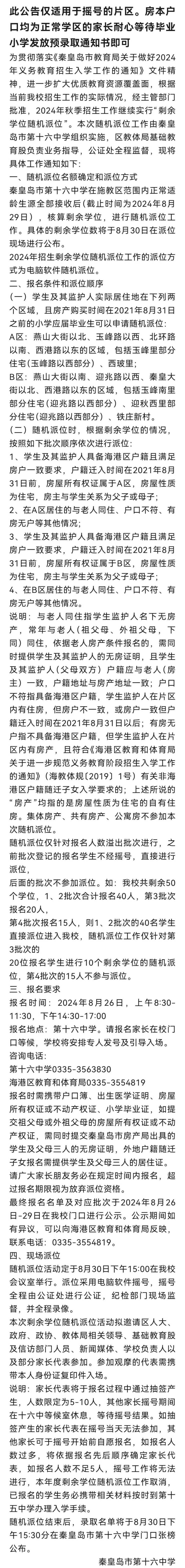 秦皇岛市第十六中学2024年招生剩余学位随机派位工作招生公告