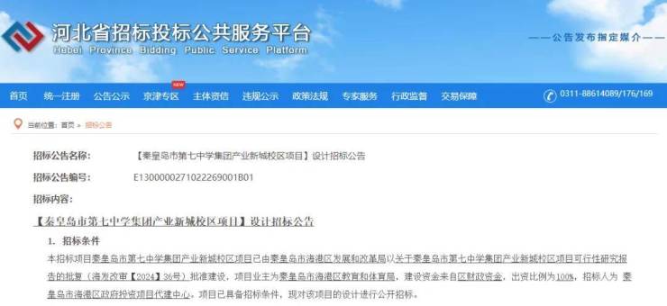 项目名称:秦皇岛市第七中学集团产业新城校区项目