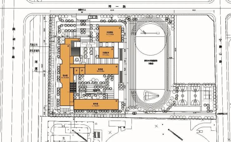 教学楼(初一)建筑面积6040.1平方米、高度23.1米,
