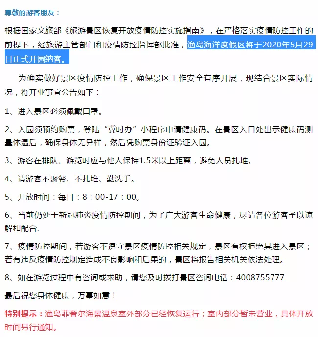 6月8日起,山海关区公办小学四、五年级复学复课,实行走读管理。一至三年级做好复学复课准备,具体时间另行确定。5月25日至6月6日,山海关区公办初中三年级设置两周解除封闭过渡期,过渡期后全部返回原学校正常上课,走读管理。6月8日起,将对提出开园申请的幼儿园进行开园条件核查验收,具备条件方可开园,幼儿入园坚持自愿原则。其他校外培训机构线下培训时间另行确定。12看到请报警