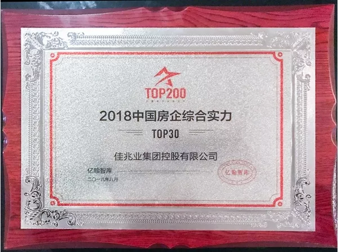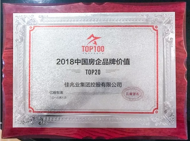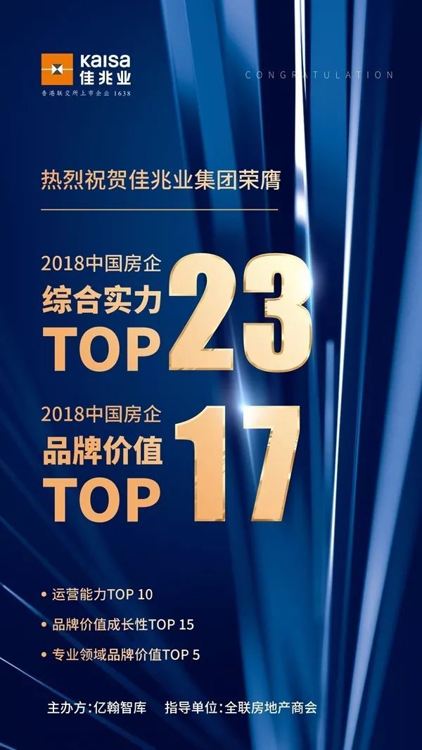 佳兆业集团荣获2018中国房企品牌价值17强、综合实力23强