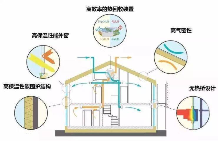 被动式住宅采用超厚的绝热材料和复杂的门窗,主要通过住宅本身的构造做法达到高效的保温隔热性能,并且通过利用太阳能和家电设备的散热,为居室提供热源,让室内达到恒温、恒湿、恒氧、恒洁的效果。