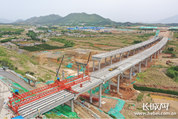 5月26日,京秦高速公路遵秦段建设取得重要进展,下平山大桥右幅T梁全部完成架设,这是遵秦项目首座实现单幅贯通的大桥。