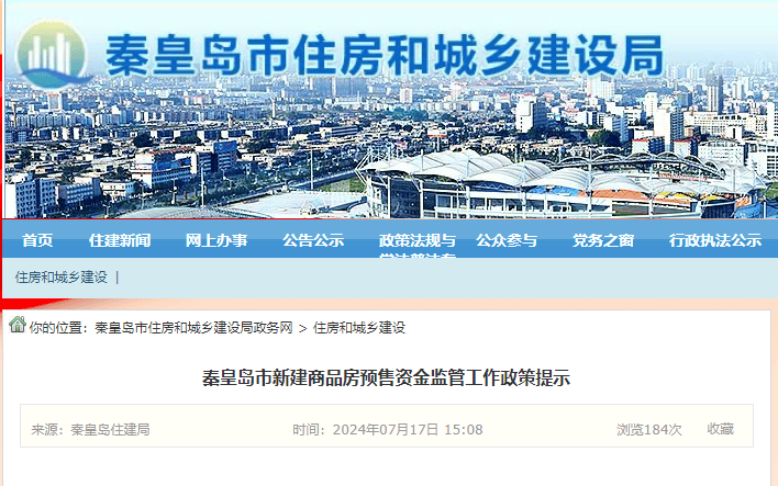 据秦皇岛市住建局官网消息,7月全市共计发出1张预售证,详情如下:
