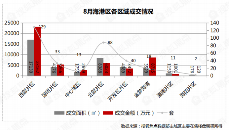 8月海港区8大片区新建商品房成交面积4跌4涨,详情如下: