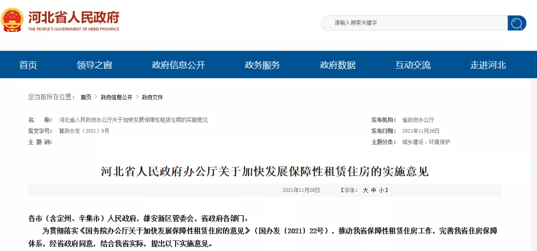 河北省人民政府办公厅关于加快发展保障性租赁住房的实施意见