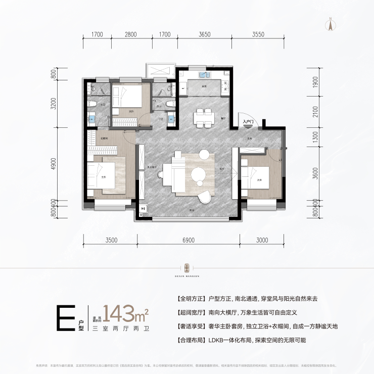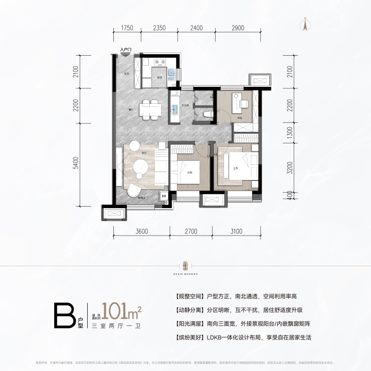 建面约101-143㎡高感光户型,南向三面宽,3-3.1米奢阔层高,LDKB一体化设计,动静分区明确,满足大家庭的舒适生活需求。