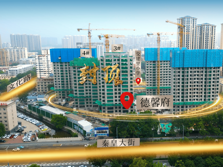 项目雄踞秦皇大街与文化路交汇处,执掌城市发展主轴,拥揽繁华商圈与生态资源,从容穿梭于动静之间。