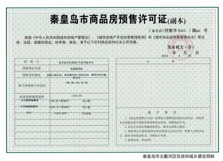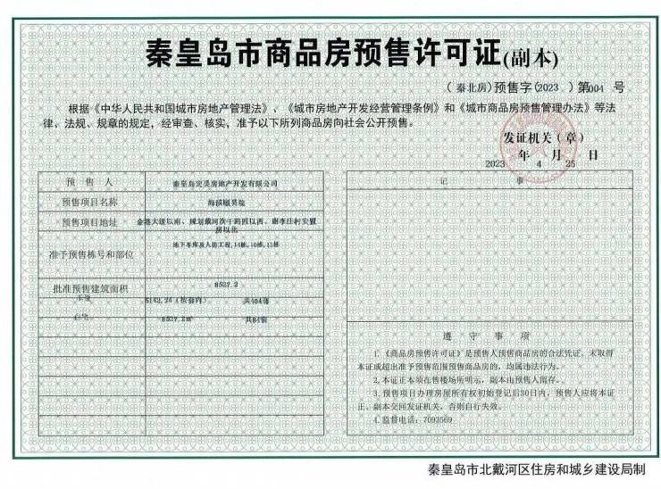 4月份秦皇岛6张预售证发出,超6万㎡住宅集中入市!