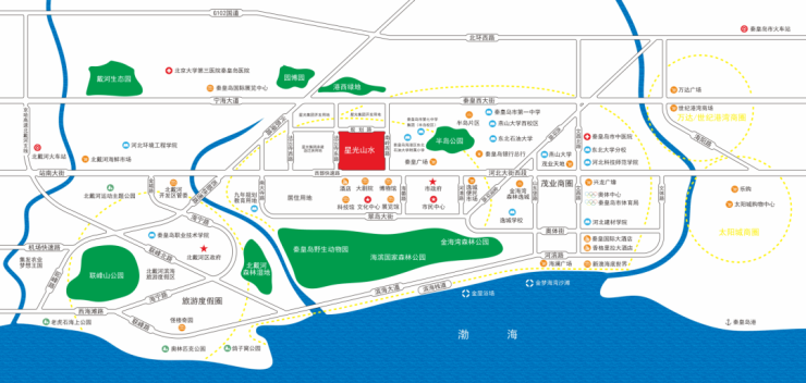 楼盘所在区域位于海港区、开发区、北戴河区三区交汇处,拥享纵横畅达路网,可直达河北大街、西部快速路等多条城市主干道。