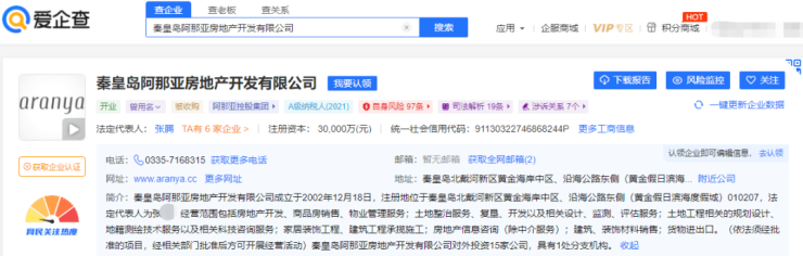 秦皇岛阿那亚房地产开发有限公司成立于2002年12月18日,注册地位于秦皇岛北戴河新区黄金海岸中区、沿海公路东侧(黄金假日滨海度假城)010207。