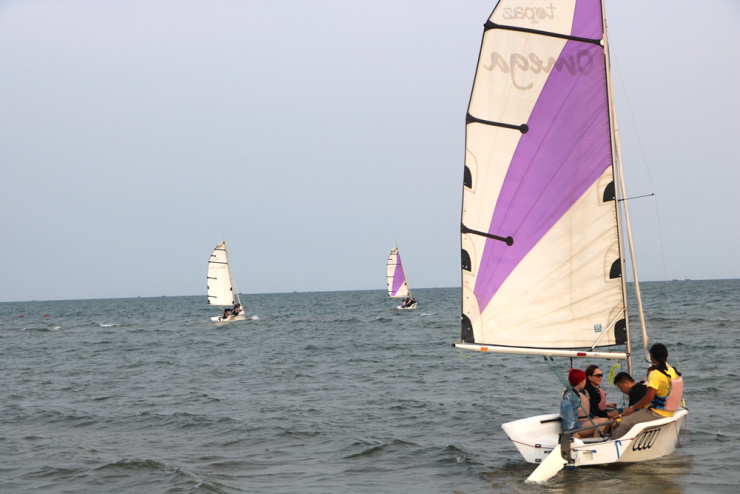 傍晚是最适合感受风浪的时刻,宾客们面对大海跃跃欲试,纷纷换上救生衣乘帆出航,体会航海运动的独特魅力,在航海体验中大家获得了坚韧性格和乐观心态,让每个人都认识了更勇敢的自己。