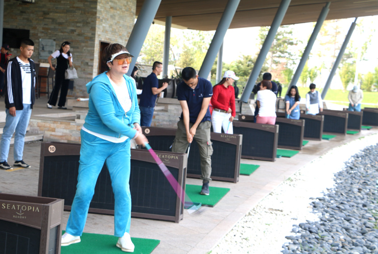 9月22日上午,轻松、闲适的心情是这段时光的主旋律,宾客们来到蔚蓝海岸高尔夫球场,约10亿立方米的鲜活的负氧离子排名前列时间进入身体,驻足眺望明艳的湖光山色,在蓝天白云,绿地红叶间转肩挥杆。