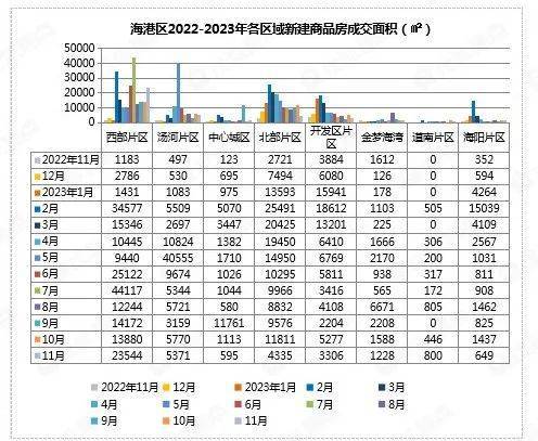 海港区范围内,西部、道南2个片区11月新房成交面积环比正增长。