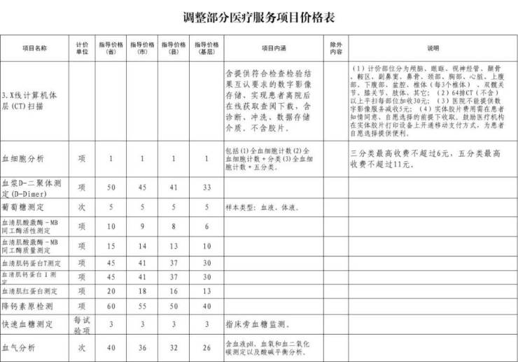 据了解,近期,医保部门聚焦地区价格差异大、采购成本差异大、费用占比高的检验项目,开展检验类价格规范治理,实行全国价格联动,倒逼试剂价格降低。市医保局按照省医保局统一部署,继今年下调其余血栓弹力图试验(TEG)等4个检验类价格后,近期又一次调整12项医疗服务项目指导价格、说明等要素,包括:X线计算机体层(CT)扫描、血细胞分析、血浆D-二聚体测定(D-Dimer)、葡萄糖测定、血清肌酸激酶-MB同工酶活性测定、血清肌酸激酶-MB同工酶质量测定、血清肌钙蛋白T测定、血清肌钙蛋白Ⅰ测定、血清肌红蛋白测定、降钙素原检测、快速血糖测定、血气分析。