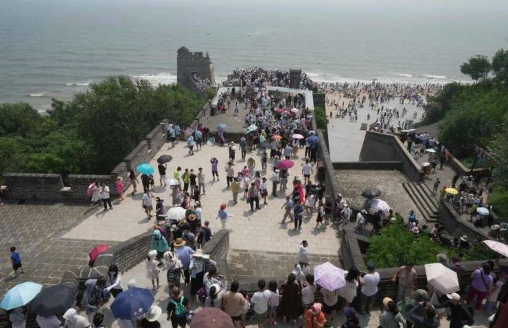 近日,大批游客来到秦皇岛休闲避暑。