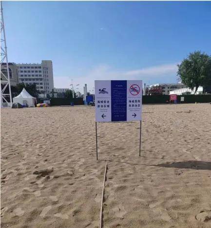 在浴场设置了醒目的浴场导览公示牌、游客须知公示牌、非游泳区与游泳区分界牌、非游泳区警示牌等。