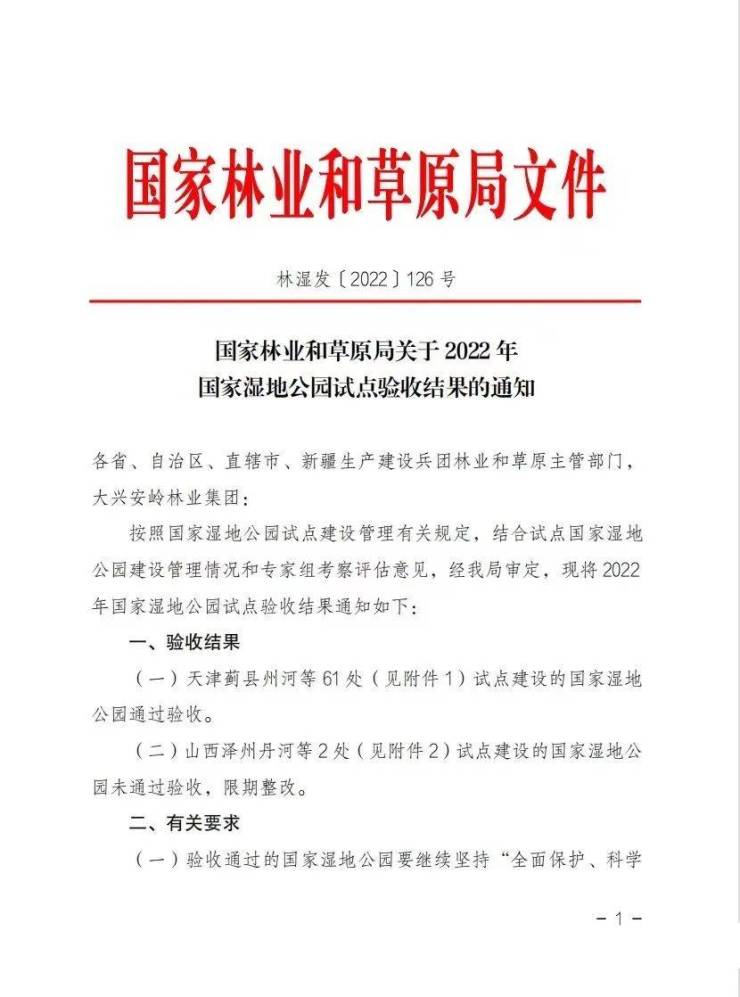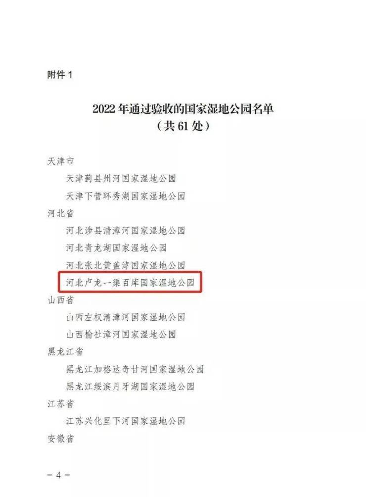近日,国家林业和草原局印发《关于2022年国家湿地公园试点验收结果的通知》,河北省秦皇岛市卢龙县一渠百库国家湿地公园顺利通过验收,正式成为国家湿地公园。