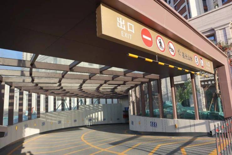 星光山水将地下公区及车库通道升级为U型铝合金木纹转印格栅吊顶,木纹的温润搭配金属的质感,配合灯光设计,营造出酒店式归家的尊崇体验。