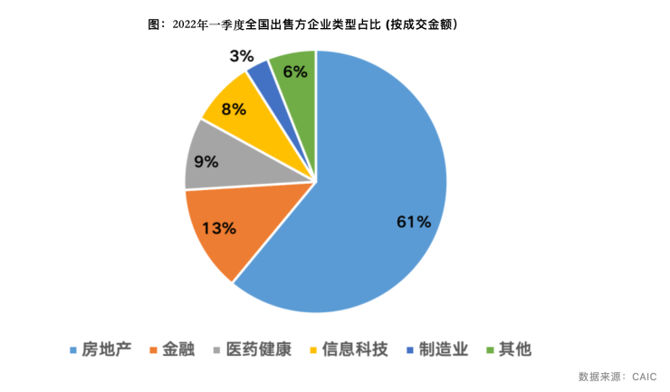 4月25日,据克而瑞研究中心发布的报告显示,2022年一季度,房地产企业延续2021年频繁出售资产的趋势,出售方企业类型中,地产行业出售额占比总成交额61%,高居首位。单月来看,3月份有多宗房企项目成交,如浙商银行以30.3亿元购置绿地控股旗下位于浦东的创驿大厦,作为其在沪机构发展办公使用;位于杭州且2012年开始规划,至今仍未完工的恒大水晶城商业项目以36.6亿元成交,浙江建投为收购主体,此举目的为加快化解其与恒大集团及下属公司应收款项逾期问题。