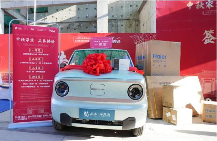 活动高潮迭起,每一位嘉宾都随机抽取10名幸运业主上台参与砸金蛋的惊喜环节。每个金蛋内藏有令人兴奋的奖品,四等奖的幸运儿将从冰箱、电视、华为平板中抽取一份,三等奖得主将赢得价值约5000元的金条,二等奖的幸运嘉宾将获得华为MATE 60 PRO手机,而最激动人心的时刻属于一等奖获得者,她将喜提吉利熊猫新能源汽车一辆!这场砸金蛋盛宴不仅让业主们体验了无限惊喜,更体现了品泰物业对业主们的满满诚意与祝福。