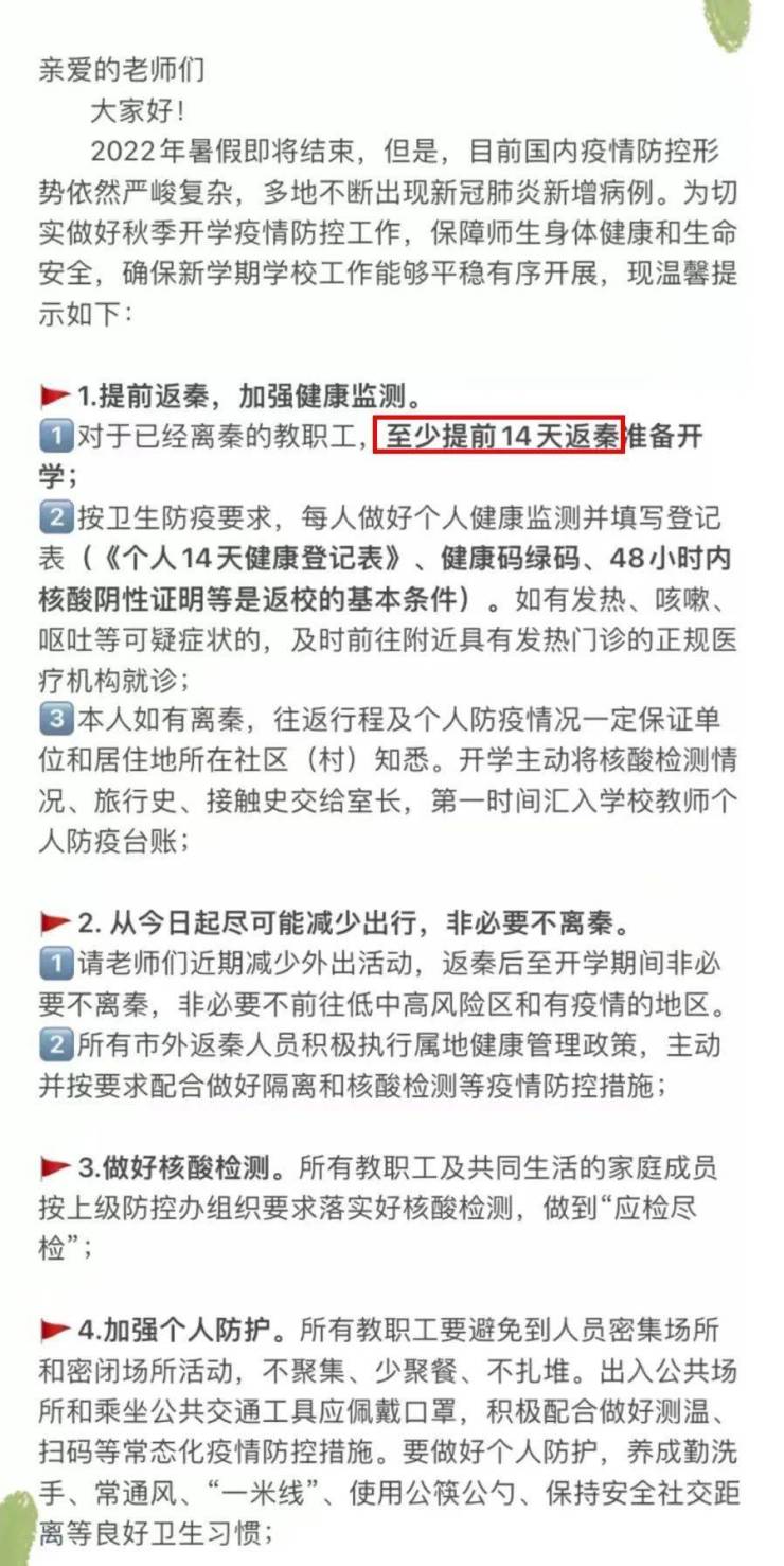 开学具体时间安排等班主任老师通知,为做好开学前准备工作,根据防控要求,全体学生需在8月26日前返回秦皇岛。