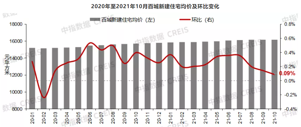 从成交均价看,中指研究院数据显示,10月全国百城新房均价为16189元/平方米,环比上涨0.09%,同比上涨3.08%,涨幅较上月收窄0.05个百分点,已连续4个月涨幅收窄,且本月新房价格环比涨幅降至年内低点;同比上涨3.08%,涨幅较上月收窄0.32个百分点。