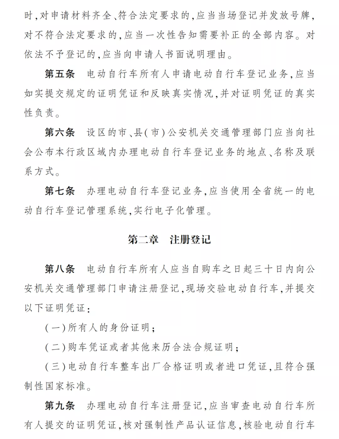 电动自行车所有人应当自购车之日起三十日内,向公安机关交通管理部门申请注册登记,现场交验电动自行车,并提交以下证明凭证: