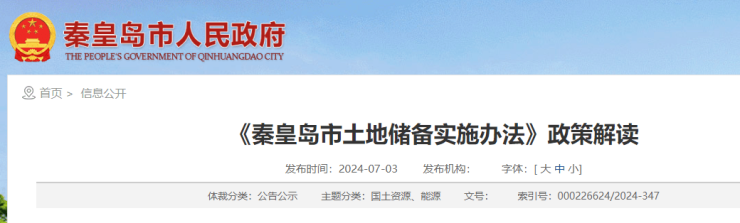 7月3日,秦皇岛市人民政府官网发布《秦皇岛市土地储备实施办法》政策解读,详情如下: