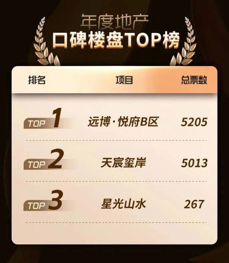 在刚刚结束的“搜狐焦点秦皇岛年度地产榜”评选活动中,“年度地产之口碑楼盘TOP榜”榜单揭晓,远博·悦府B区、天宸玺岸、星光山水跻身前三。