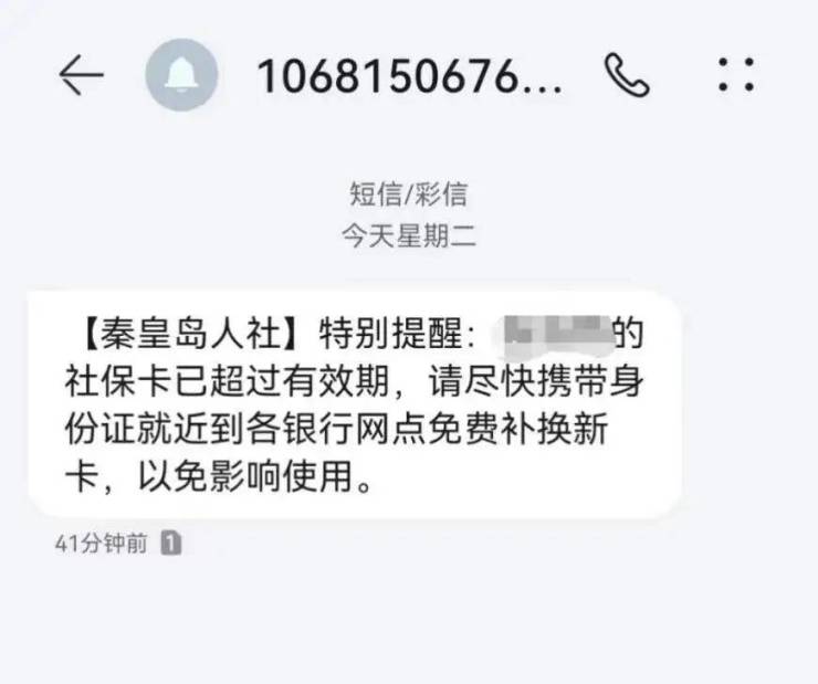 对于已到期的第二代社保卡,近期将陆续收到官方换卡提醒短信(见下图):