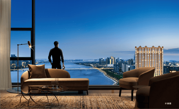 270°IMAX环幕视野下,汤河碧波与城市天际线尽收眼底,清晨推窗即见水光潋滟,入夜霓虹与星河共舞。天赋稀贵地段,方能成就传世之作。