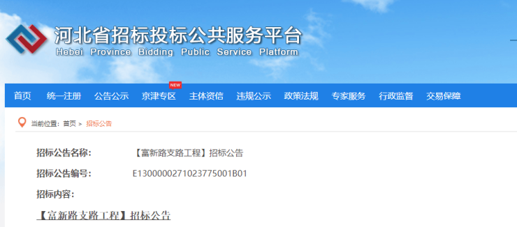 招标范围:富新路支路工程,详见施工图纸和工程量清单
