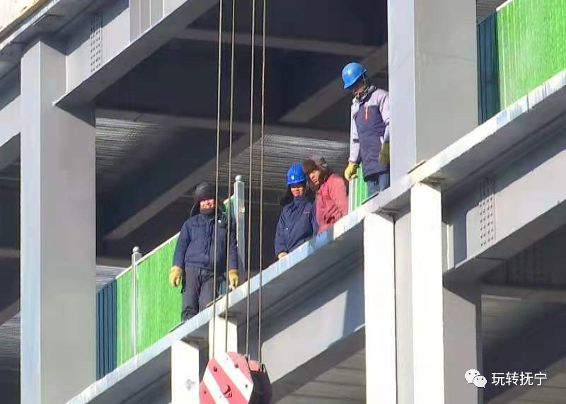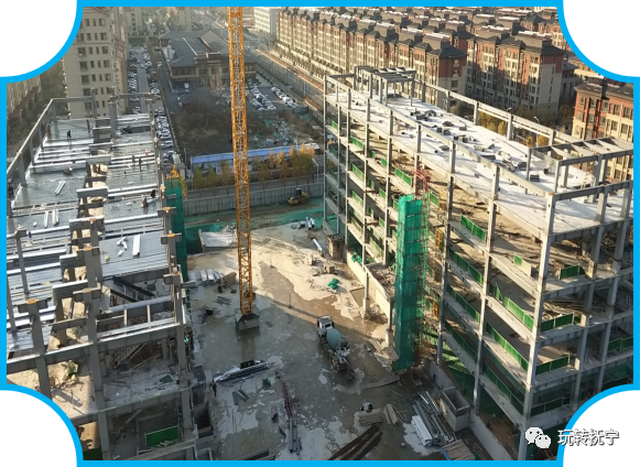 碧海学校开工一年了,现在进展如何呢?我们一起到现场看一下。这是采用新型建筑方式钢结构建造,特点是节能环保、抗震,目前,主体框架工程已经完工。