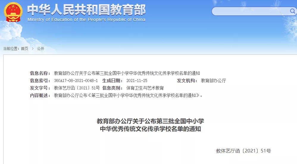 近日,从教育部网站获悉,第三批全国中小学中华优秀传统文化传承学校名单公布,其中秦皇岛5所学校入选,快看有你孩子的学校吗?