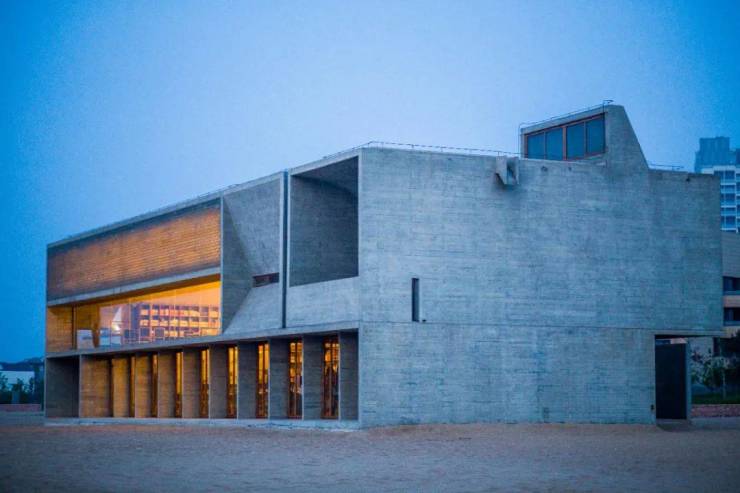 阿那亚孤独图书馆,是阿那亚第一个且具有标性的精神载体。两层楼高的灰色建筑,孤独地矗立在北中国海的沙滩上,被称作"孤独的图书馆"。图书馆由建筑设计师董功设计,设计的主要理念在于探索空间的界限,身体的活动,光氛围的变化,空气的流通以及海洋的景致之间共存关系。图书馆也成为社区居民与游客珍爱的活动场所,是社区内阅读空间和文化艺术类活动举办地。